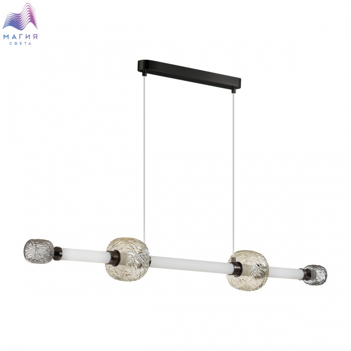 Микс классических элементов и современных форм гармонично собран в линии светильников Odeon light exclusive Kliff. Источником света выступают акриловые трубки с LED цветовой температуры 3000К, дополненные металлом в цветах чёрный хром и античная бронза. Стеклянные декоративные элементы в виде бусин с объемным паттерном, похожим на рябь на воде, выполнены в двух цветах — дымчатом и янтарном. Из настенных бра данной серии можно создавать красивые композиции на стене. Потолочная люстра имеет наборную штангу, благодаря чему ее высоту можно менять.