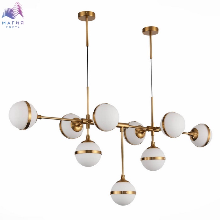 В коллекции ST luce Arbe сочетаются элементы ретро и современного минимализма. Благородный бронзовый цвет арматуры гармонирует с круглыми плафонами из опалового стекла, рассеивающими свет на 360°. Прямые линии арматуры придают дизайну четкость и динамичность. Подвесные светильники регулируются по высоте, а большой размер позволяет равномерно освещать значительное пространство. В качестве дополнительных источников света в коллекции есть бра и одиночный подвес.