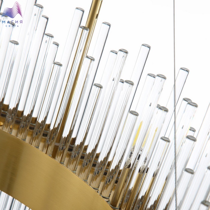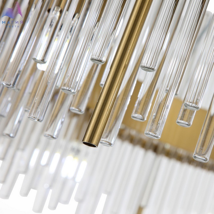 Сочетание тонких трубок из хрустального стекла и металла в цвете латунь, а также крепление на тросы делает дизайн коллекции ST luce Nitido легким и изысканным. Светильники прекрасно дополнят как современные, так и классические интерьеры. Коллекция включает подвесную люстру и бра.