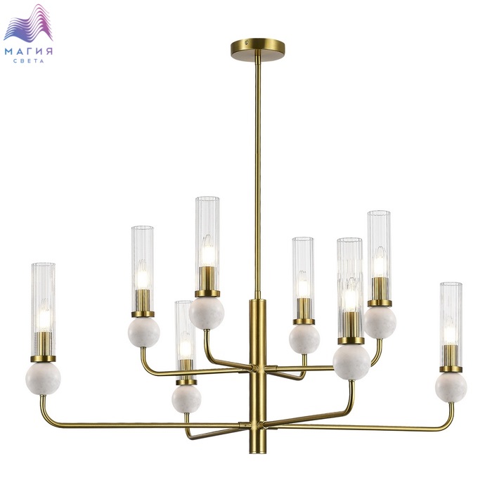 Классическая коллекция ST luce Medea представлена потолочными люстрами, подвесами и настенными светильниками. Металлическая арматура исполнена в двух цветах на выбор: черном и латунном. Стеклянные плафоны с рифленой фактурой хорошо пропускают свет. Декоративные элементы изготовлены из мрамора белого или зеленого цветов в форме шара.