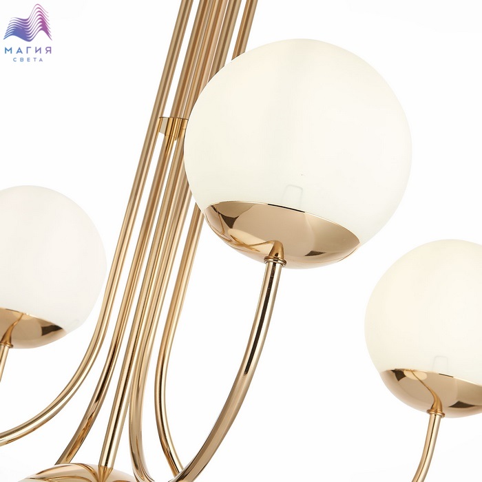 Светильники из серии ST luce Avellino выглядят нарядно и торжественно. Направленные вверх тонкие рожки заканчиваются сферическими плафонами из белого стекла, а центральный плафон большего диаметра служит дополнительным источником света, направленным вниз. Бра, входящее в коллекцию, может служить самостоятельным дизайнерским объектом.