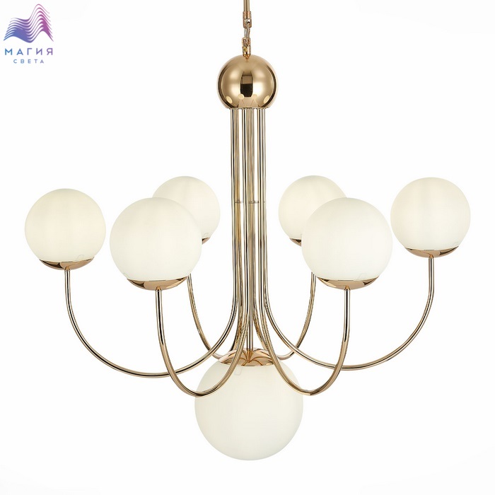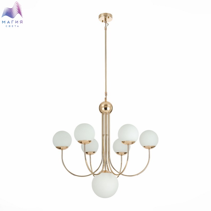 Светильники из серии ST luce Avellino выглядят нарядно и торжественно. Направленные вверх тонкие рожки заканчиваются сферическими плафонами из белого стекла, а центральный плафон большего диаметра служит дополнительным источником света, направленным вниз. Бра, входящее в коллекцию, может служить самостоятельным дизайнерским объектом.