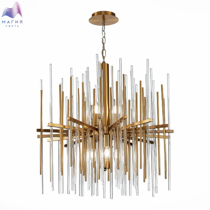 Трубочки из стекла и металла разной длины создают многогранный и объемный дизайн светильников ST luce Teramo. Необычным является конструкция подвесной люстры, где лампочки располагаются не на рожках, а рядом с центральной штангой, направлены вверх и вниз. В дополнении в люстре в коллекции предусмотрено бра.