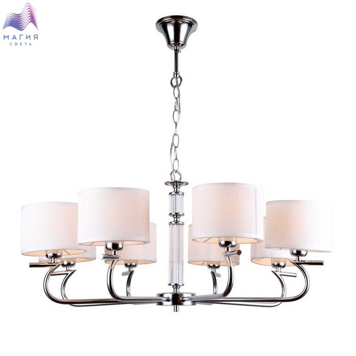 Люстра подвесная 2012/09/08P Stilfort серии Ellada - воплощение стиля модерн. Арматура из хромированного металла украшена стеклянными декоративными элементами. Она гармонично сочетается с плафонами люстры, выполненными в белом цвете.