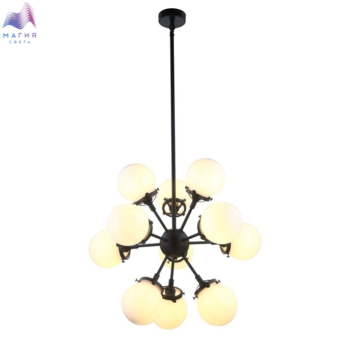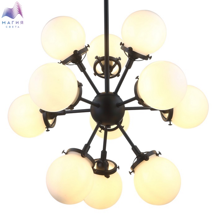 Люстра подвесная 2106/01/11P Stilfort серии Ring - креативная модель в стиле модерн. Арматура изготовлена из металла, полностью в черном цвете. Плафоны люстры из матового стекла, выполнены в белом цвете.