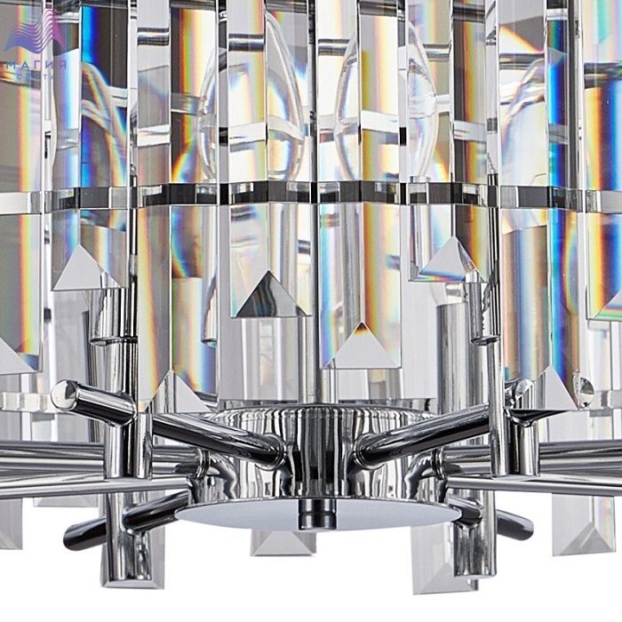 Люстра подвесная хрустальная 2114/09/08P Stilfort серии Feeriya выполнена в стиле модерн. Арматура изготовлена из металла в цвете "хром". Украшена хрустальными навесными декоративными элементами.