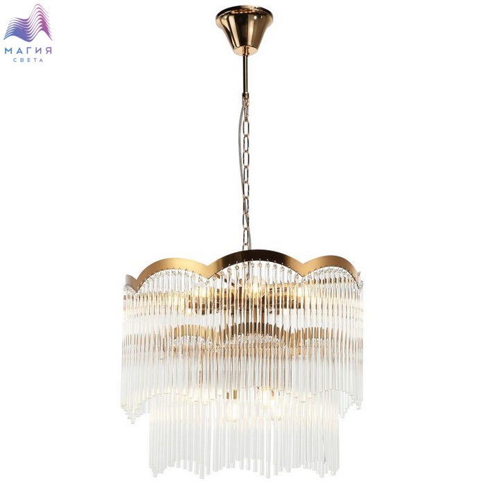 Люстра подвесная хрустальная 2121/03/12P Stilfort серии Seauty выполнена в стиле модерн. Арматура изготовлена из металла в цвете "латунь". Украшена хрустальными навесными декоративными элементами.