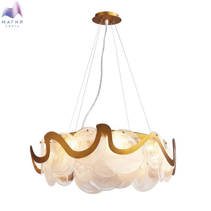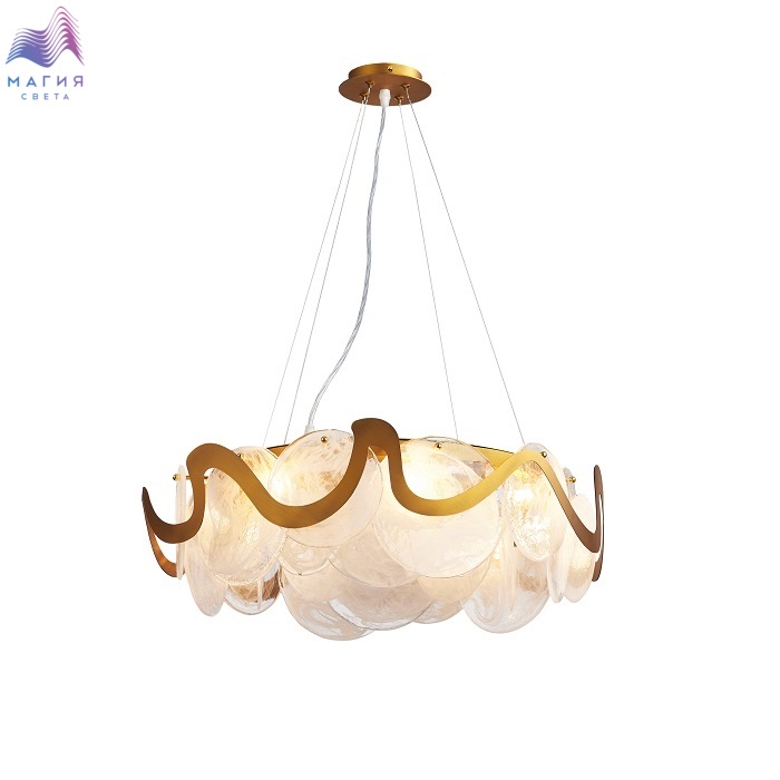 Люстра подвесная 2130/03/08P Stilfort серии Sweet - воплощение стиля модерн. Арматура люстры, изготовленная из металла в цвете "золото", украшена стеклянными дисками.