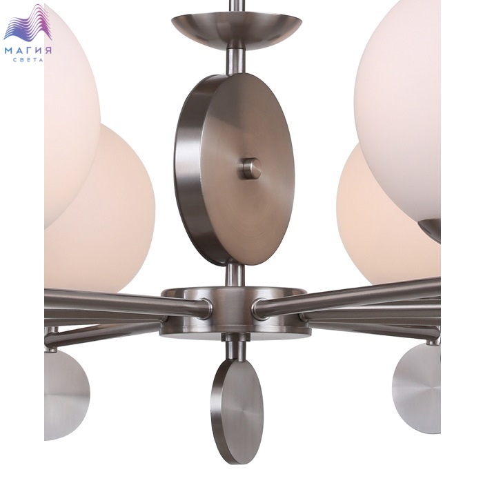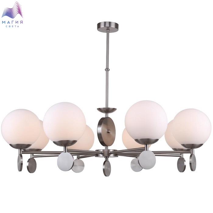 Люстра подвесная 2141/11/08P Stilfort серии Marsela - модель в стиле модерн. Арматура люстры выполнена из металла в цветовом исполнении "никель". Плафоны стеклянные, белые.