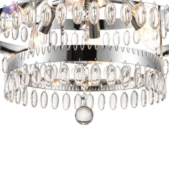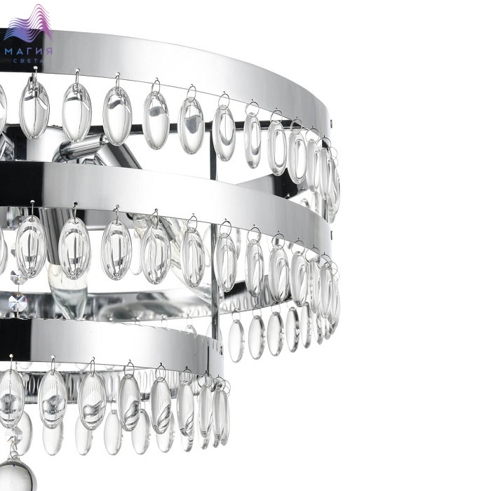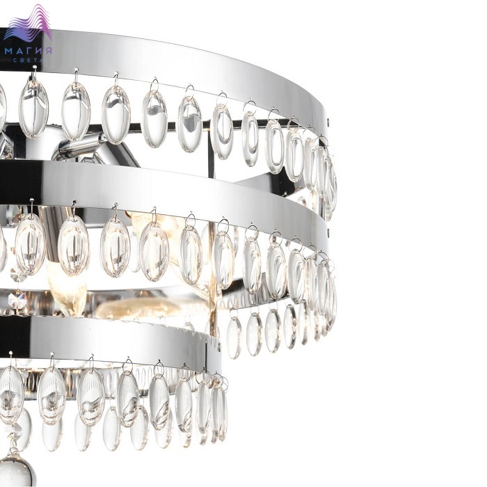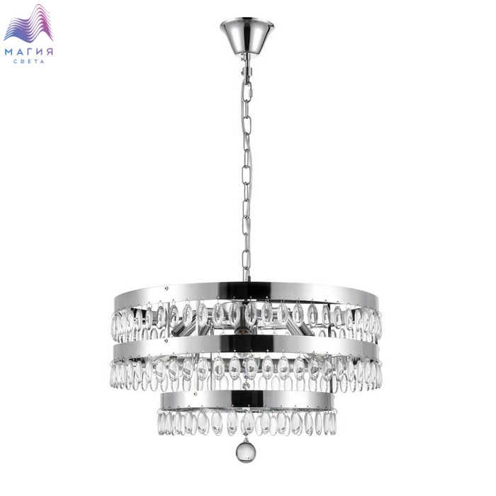 Серия Vele Luce Breeze представлена подвесной люстрой в цвете "хром". Плавные линии, многоярусный каркас и капли-подвески дарят ощущение легкости! Длину цепи можно отрегулировать при монтаже.