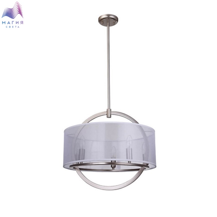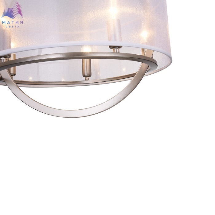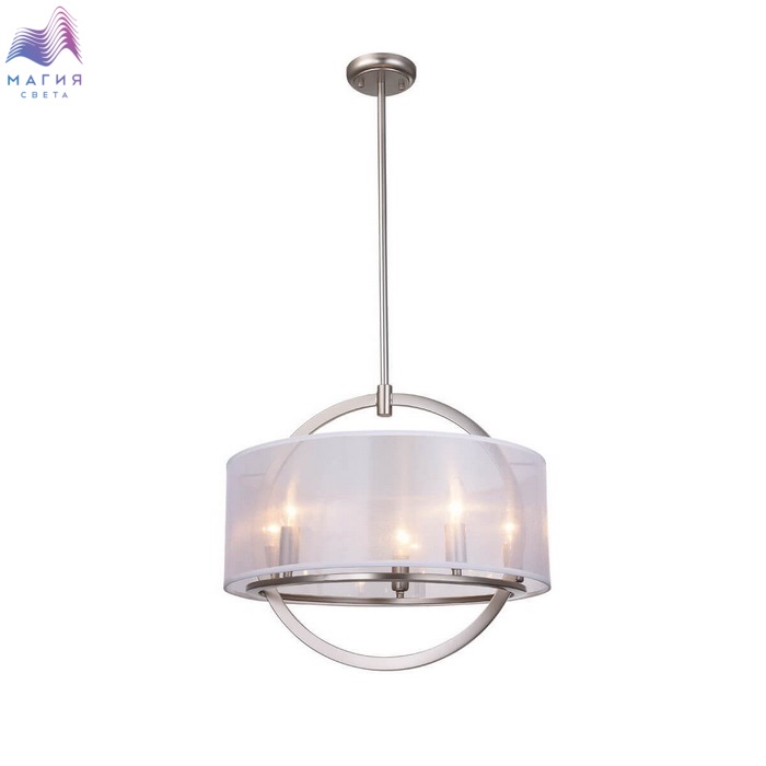 Подвес и бра серии Vele Luce Effe исполнены в неоклассическом стиле. За полупрозраынм абажуром скрываются источники света. Металлическое основание окрашено в цвет "сатин никель".