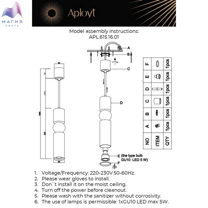 Высота без подвеса (мм) 500