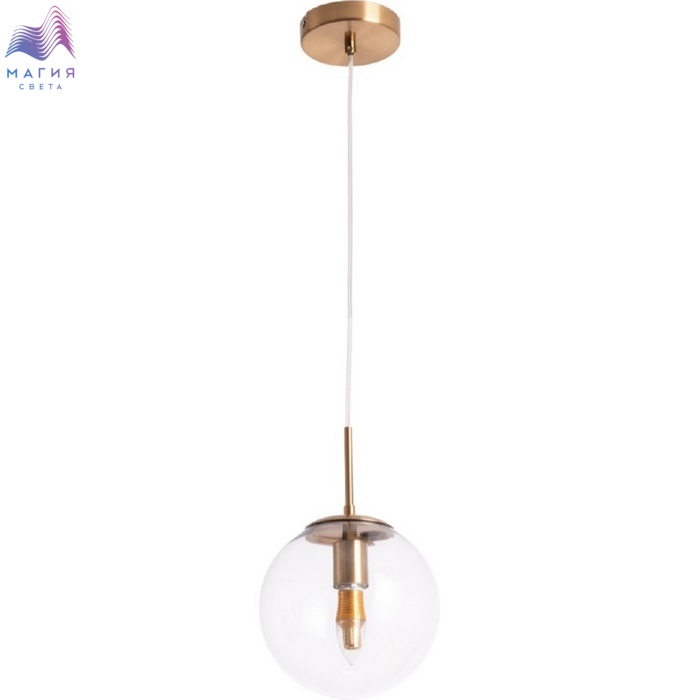 Подвесной светильник Arte Lamp Volare в форме шара. Металлическое основание окрашено в хромированный или бронзовый цвет. Плафон изготовлен из стекла. Длину провода можно отрегулировать при монтаже.