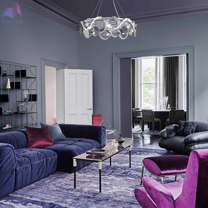 Люстра может управляться со смартфона.