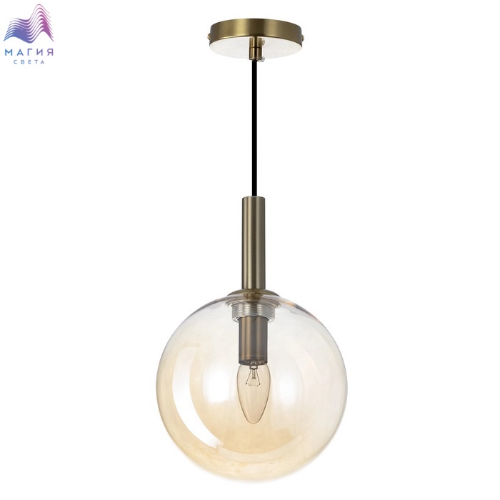 Подвесной светильник Citilux Лорен CL146013. Материал: металл/стекло. Цвет: бронза/шампань. Плафон в форме шара изготовлен из прозрачного стекла светло-янтарного оттенка. Высота легко регулируется при установке от 37см до 1,55м.