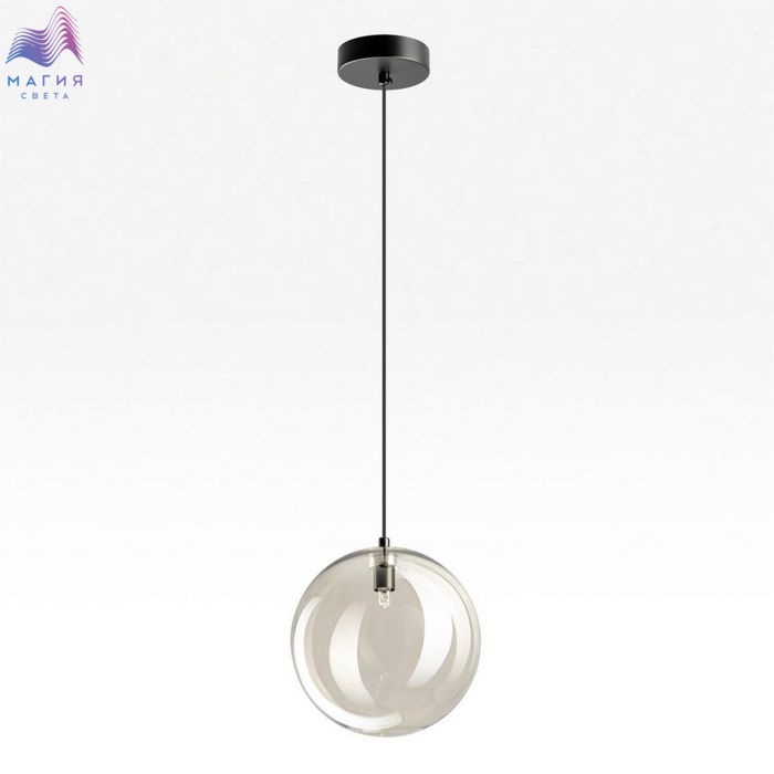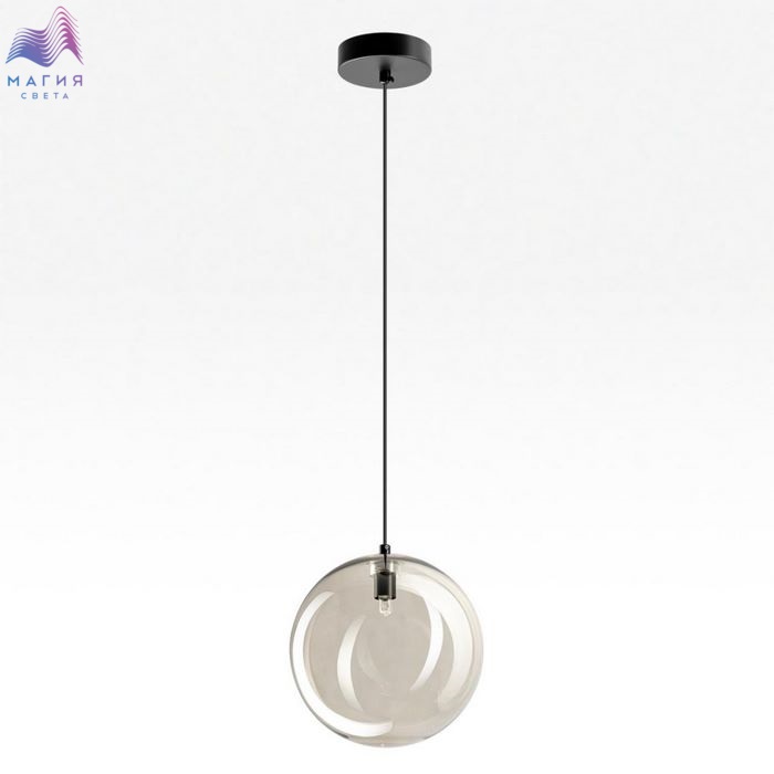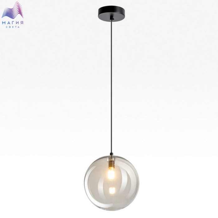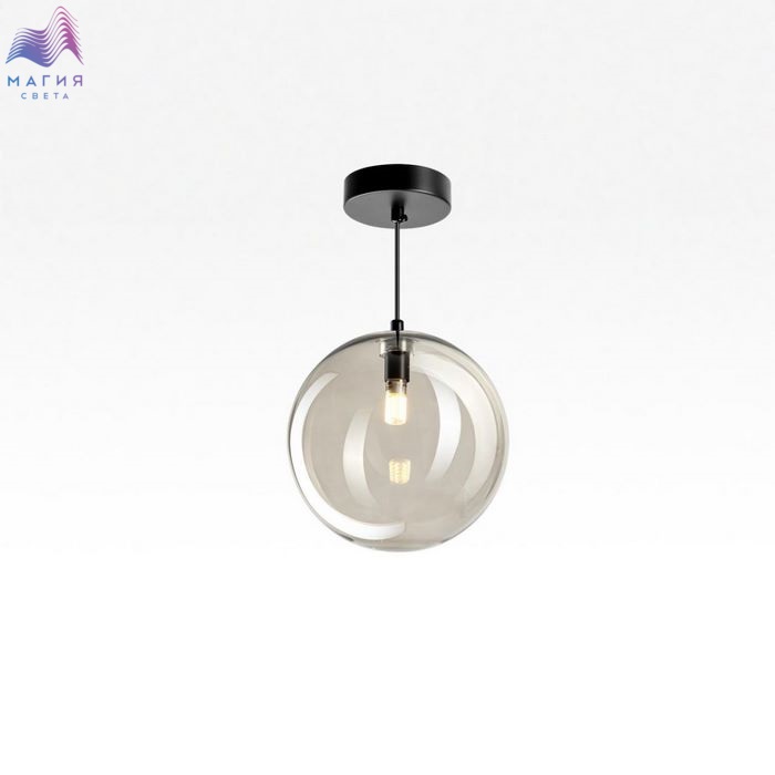 Подвесной светильник Citilux ORTON CL202021. Материал: металл/стекло. Цвет: матовый черный/дымчатый. Плафон в форме шара. Прозрачный стеклянный шар с лёгким дымчатым оттенком, подвешенный на чёрном матовом металлическом основании, выглядит эффектно при любом освещении.
