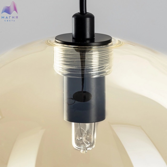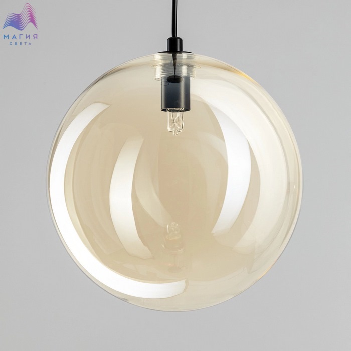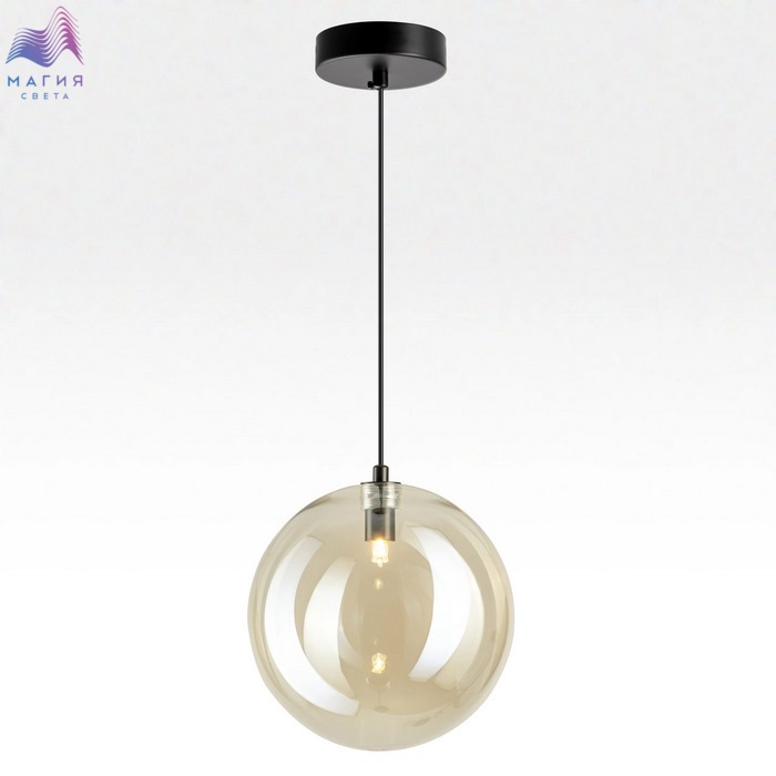 Подвесной светильник Citilux ORTON CL202022. Материал: металл/стекло. Цвет: черный/шампань. Плафон в форме шара. Прозрачный стеклянный шар с золотистым оттенком шампань, подвешенный на чёрном матовом металлическом основании, выглядит эффектно при любом освещении.