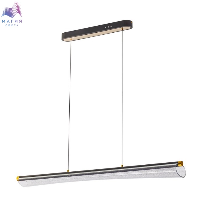 Подвесной светодиодный светильник Citilux FANNY CL213121. Материал: металл/полимер. Цвет: графит/золото/прозрачный. Плафон-рассеиватель выполнен из прозрачного оптического полимера с глянцевой поверхностью и вкраплениями мельчайших блесток, которые отражают свет и переливается мириадами искр, создавая эффект звёздного неба в миниатюре. Пульт ДУ в комплекте (плавная регулировки яркости от 5 до 100%, управление цветовой температурой от 3000K до 6000K).