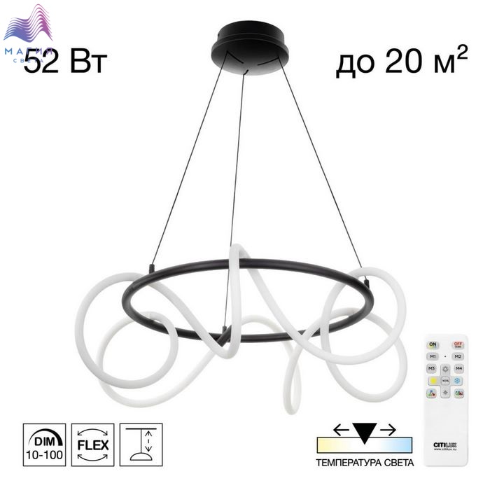 Подвесной светильник Citilux PYTHON CL220261. Материал: металл/полимер. Цвет: черный/белый. Высота легко регулируется при установке в диапазоне от 50 см до 1,5 м. Пульт ДУ в комплекте (плавная регулировка яркости от 10% до 100%, смена цветовой температуры в диапазоне 3000K - 5500K).