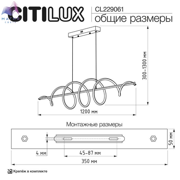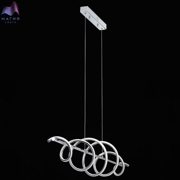 Подвесной светильник Citilux Джемини CL229061. Материал: металл/пластмасса. Цвет: хром/белый. Изделие оснащено двумя источниками света: один LED-модуль интегрирован в горизонтальную ось и светит вниз, второй — в декоративную спираль и освещает окружающее пространство. Светильник оснащен ступенчатым диммером с тремя ступенями яркости (15, 40 и 100%), регулируется при помощи настенного выключателя.