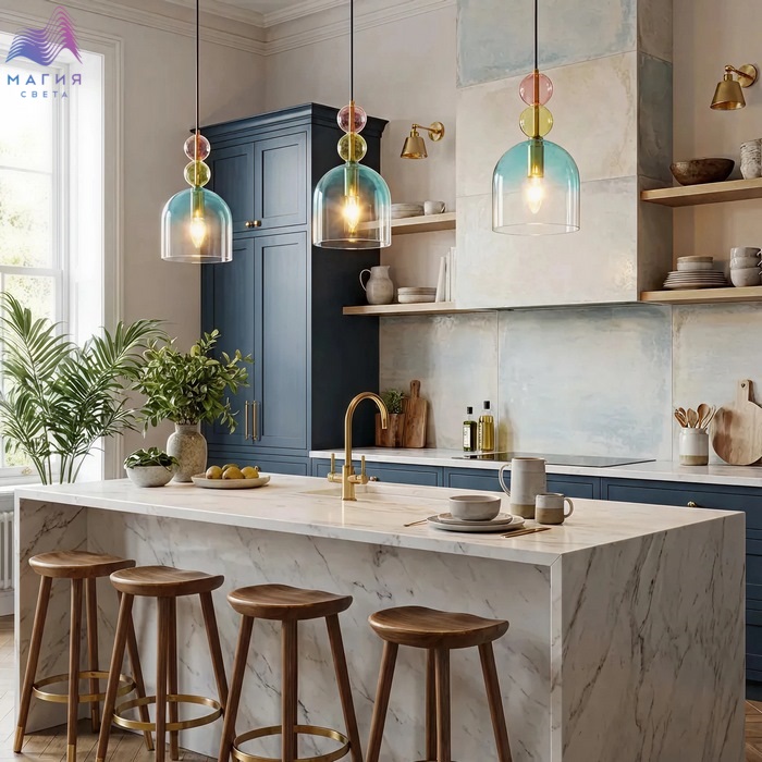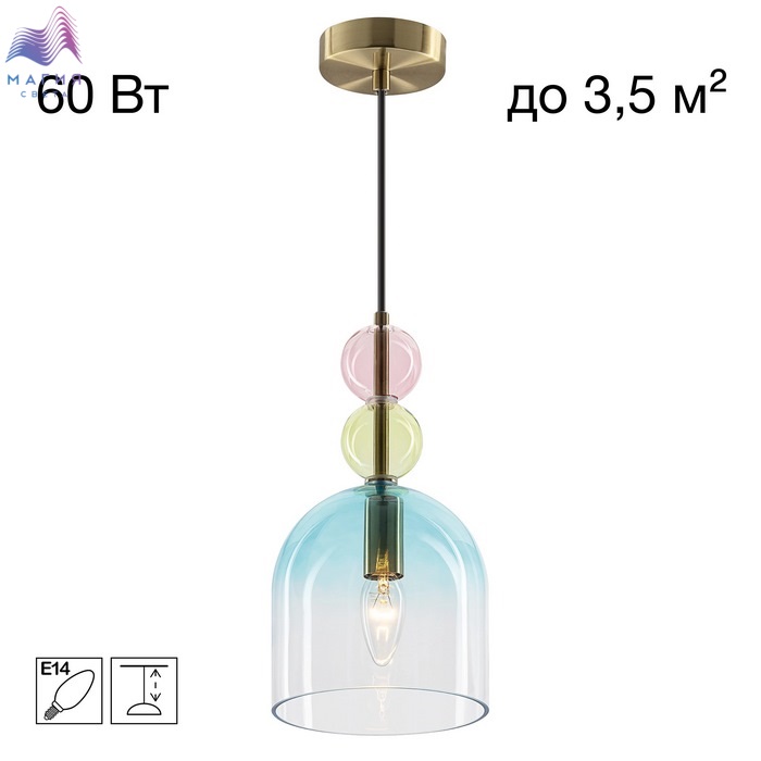 Цвет плафонов прозрачный, розовый, зеленый, голубой