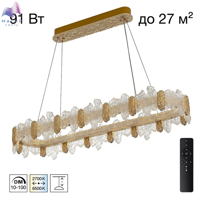 Подвесная люстра с пультом Citilux LAVA CL250172. Материал: металл/полимер. Цвет: золото/прозрачный. Встроенный диммер позволяет плавно регулировать яркость и цветовую температуру освещения, создавая атмосферу по своему вкусу. Радиопульт в комплекте.