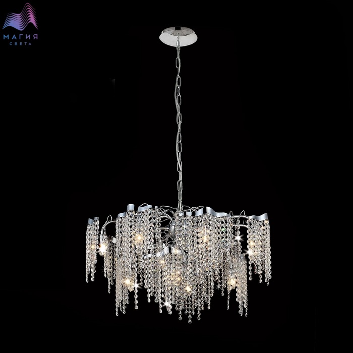 Люстра подвесная Citilux Рита CL325121. Материал: металл/хрусталь. Цвет: хром/прозрачный. Диаметр 74см, высота 55-145 см.