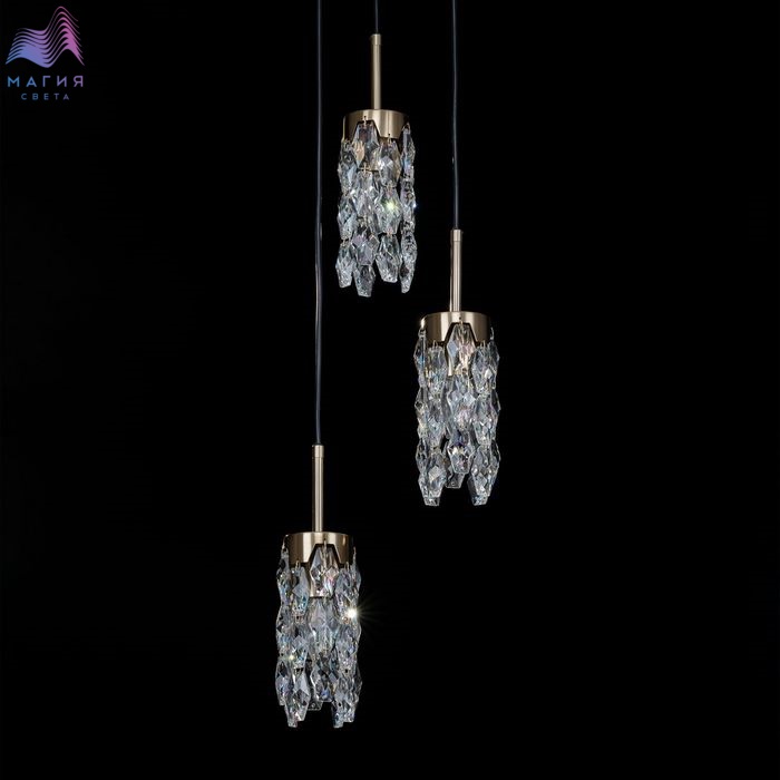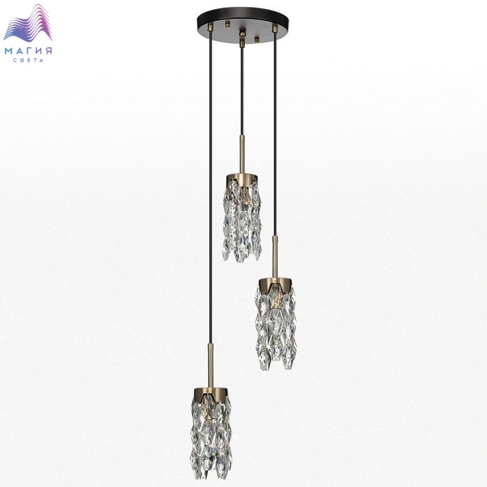 Подвесной хрустальный светильник Citilux RONIN CL326013. Материал: металл/хрусталь. Цвет: черный/бронза/прозрачный. Бронзовые плафоны — цилиндрической формы, с хрустальными подвесками. Высоту подвесов можно отрегулировать.