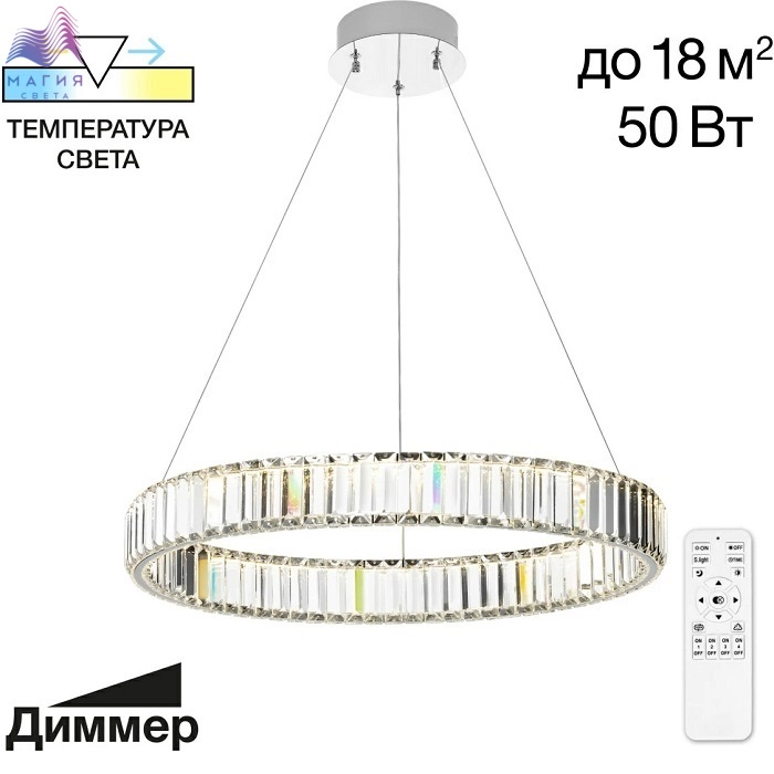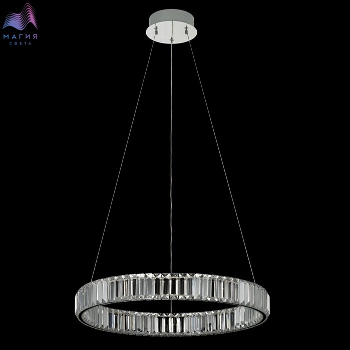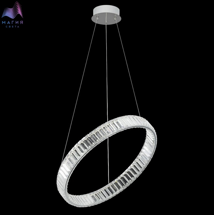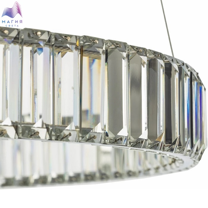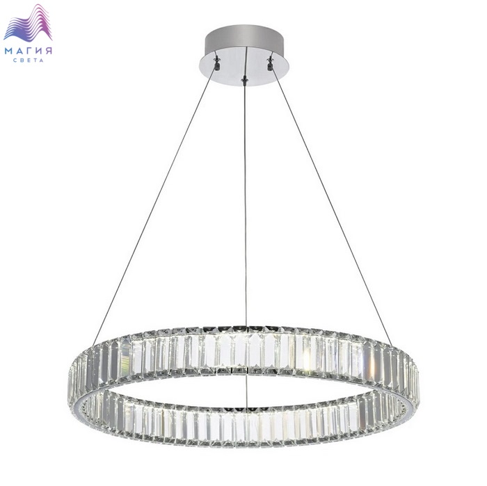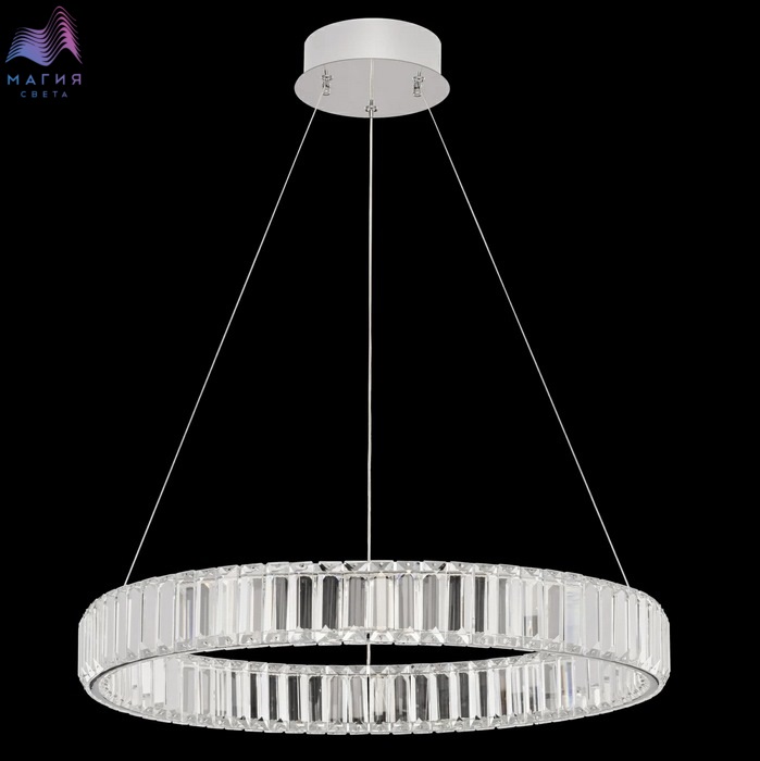 Хрустальный светодиодный светильник Citilux Чезаре CL338161. Материал: металл/хрусталь. Цвет: хром/прозрачный. Хрустальное кольцо на металлическом каркасе, подвешено на элегантных тросиках и словно парит в воздухе. Высота подвесной модели легко регулируется в диапазоне от 35см до 1,35м. Площадь освещения - до 18м².
