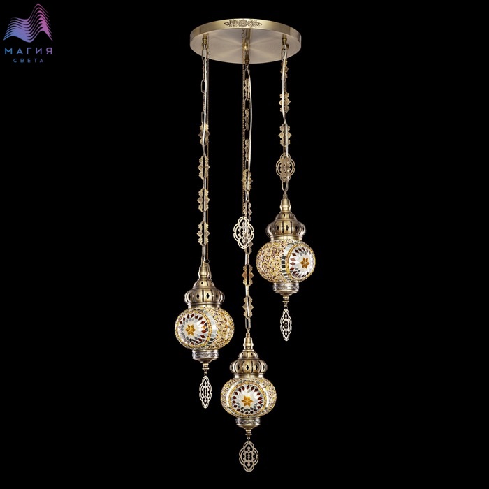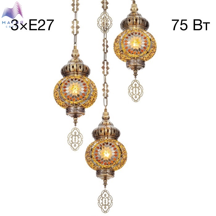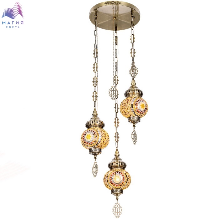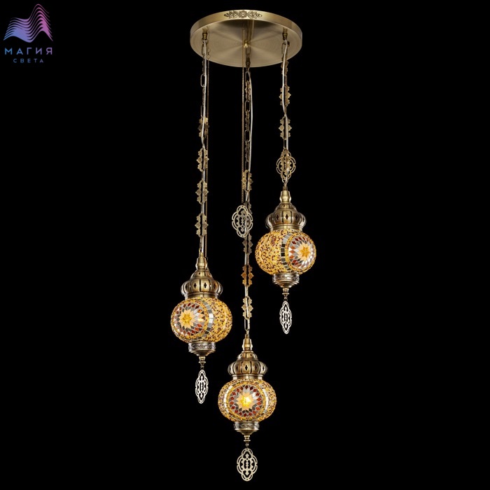 Подвесной светильник Citilux Каир CL419135. Материал: металл/мозаичное стекло. Цвет: бронза/янтарь. Три подвесных плафона выполненных в форме слегка приплюснутых шаров, словно капли меда, застывшие в воздухе.