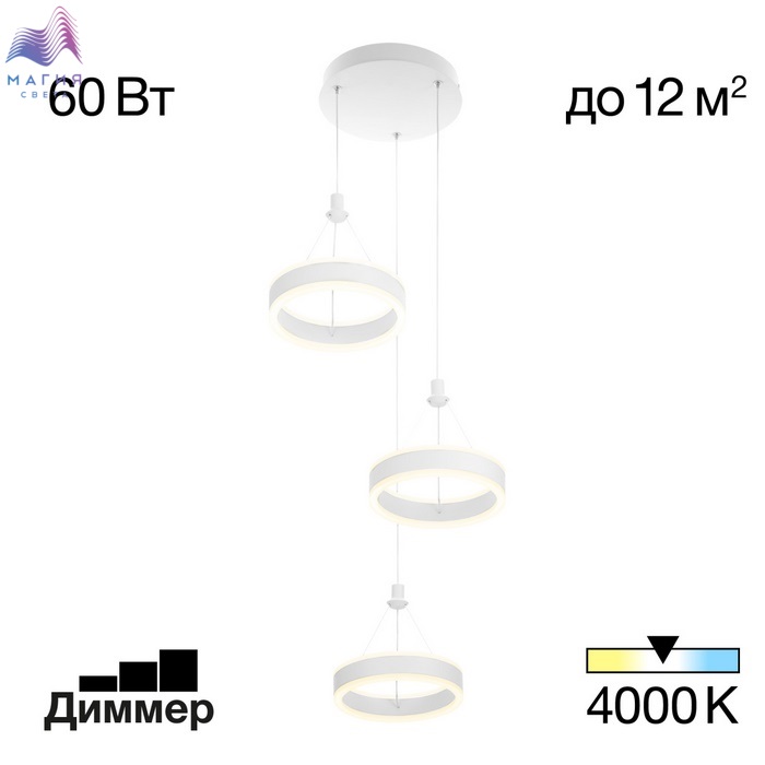 Светодиодный каскадный светильник Citilux Дуэт CL719030 выполнен в современном стиле. Материал: металл/полимер, цвет: белый. Изделие оснащено встроенным ступенчатым диммером, три уровня яркости – 100-40-15%, управляется обычным настенным выключателем. Мощность 60Вт, цветовая температура 4000К.
