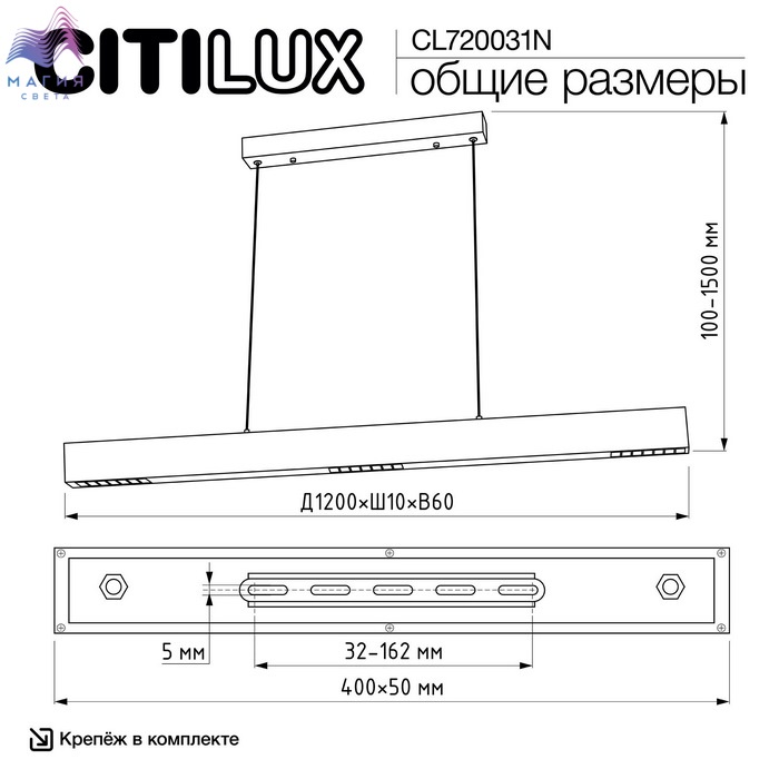 Подвесной светодиодный светильник Citilux EDGE CL720031N. Материал: металл. Цвет: черный. Одновременно включаются модули света вниз и вверх: