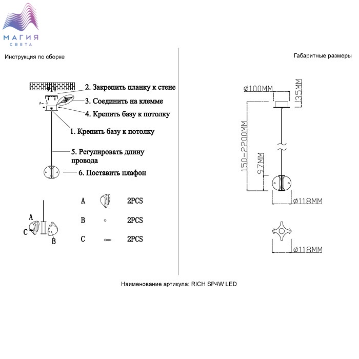 Длина подвеса (мм) 2 103