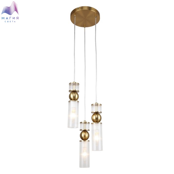 Коллекция Favourite Vanilla - универсальное решение как для классического, так и современного интерьера. Линейка представлена подвесными светильниками с 1 и 3 плафонами, люстрой и бра. Металлический каркас покрыт латунной краской. Плафоны цилиндрической формы изготовлены из прозрачного стекла.