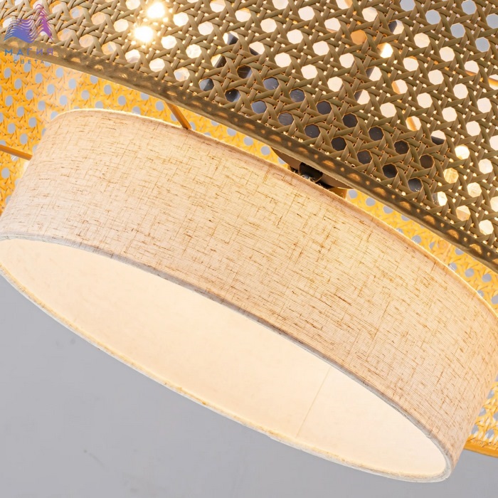 Коллекция светильников Favourite Organicum сочетает в себе природную эстетику и современный дизайн. Абажуры изготовлены из натуральных материалов: ткани, ротанга и плетеных бумажных канатиков, дополненные декоративным поясом из плетеного бамбука.