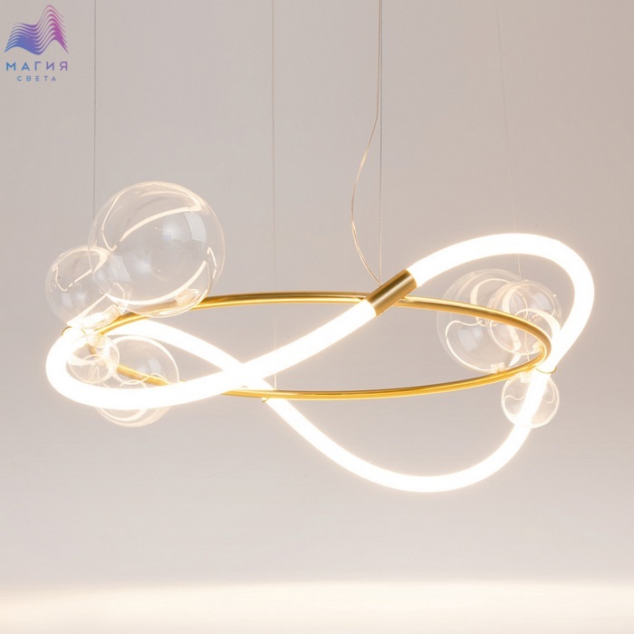 Светильники серии Maytoni Oasis исполнены в современном стиле. Модели оснащены светодиодными шнурами в тканевой оболочке и прозрачными стеклянными плафонами-шарами. Бра включается прикосновением к корпусу, где установлен touch-сенсор.