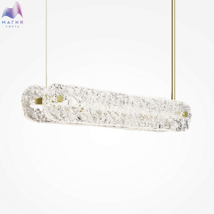 Серия Maytoni Frostum. Рельефное фактурное стекло ручной работы напоминает причудливые ледяные узоры. Металлическая арматура окрашена в цвет сатинированной латуни. Все модели оснащены встроенным LED-источником света с трехступенчатым переключателем цветовой температуры 2700-3000-4000К.