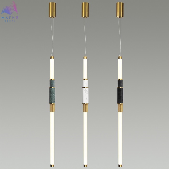 Подвесные светильники Odeon light Marmi выглядят стильно благодаря сочетанию разных материалов и поверхностей в одном изделии: притяная полированная гладкость мрамора, рифленый металлический обод, матовость акрила создают вместе стильный многофактурный предмет. У подвеса предусмотрена возможность как вертикальной установки, так и горизонтальной установки, так же интересно использовать два способа в композиции.