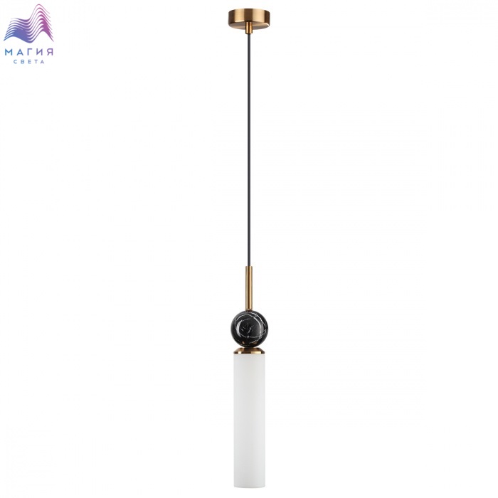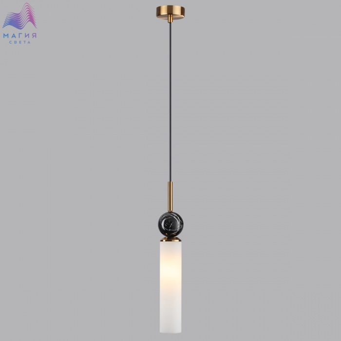Серия Odeon light Lolla сочетает элегантную геометрию и природные материалы. В подвесном светильнике используется мрамор черного цвета, эффектно сочетающийся с металлом под латунь и вытянутым плафоном из стекла.