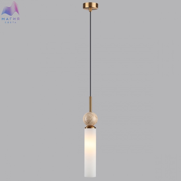Серия Odeon light Lolla сочетает элегантную геометрию и природные материалы. В подвесном светильнике используется мрамор бежевого цвета, эффектно сочетающийся с металлом под латунь и вытянутым плафоном из стекла.