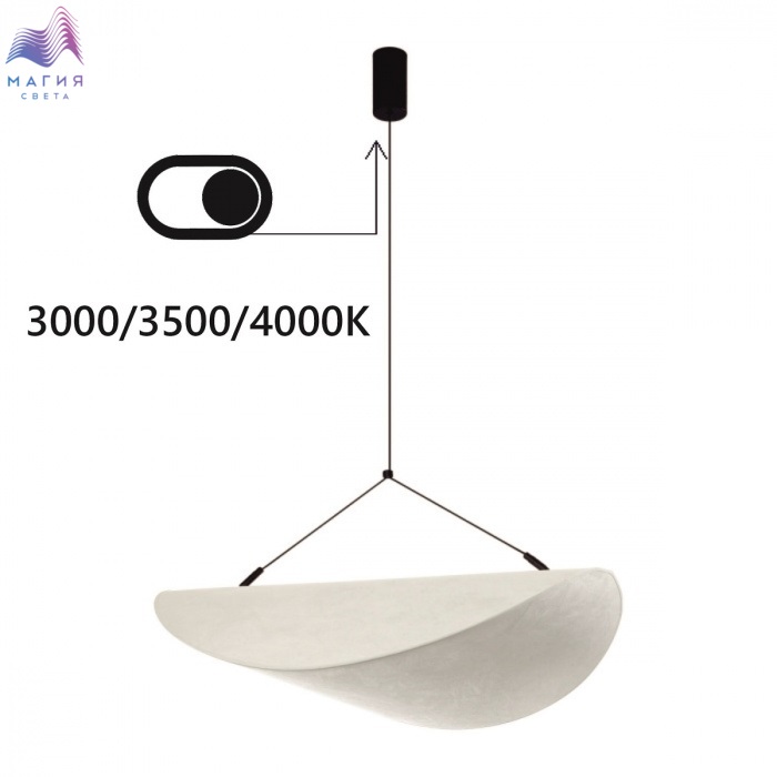 Новый материал для рассеивателя, нетканый «шелк», используется в новинке - серии Odeon light Silk. Уникальная парящая форма абажура формируется за счет встроенного внутреннего прозрачного акрилового каркаса. В потолочной чаше встроен тумблер для переключения цветовой температуры: 3000/3500/4000.