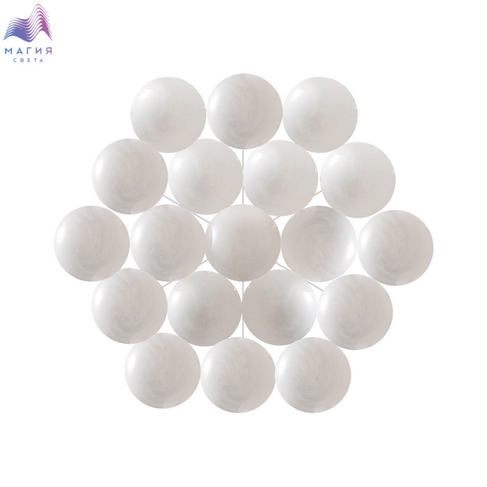 Образ шаров в серии Odeon light Magia создает воздушную атмосферу. Белое глянцевое молочное стекло выполнено с эффектом облачного узора.