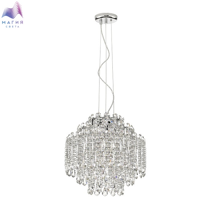 Подвесной светильник Simple Story 50231-6PL из металла цвета хром с большим количеством хрустальных подвесок.