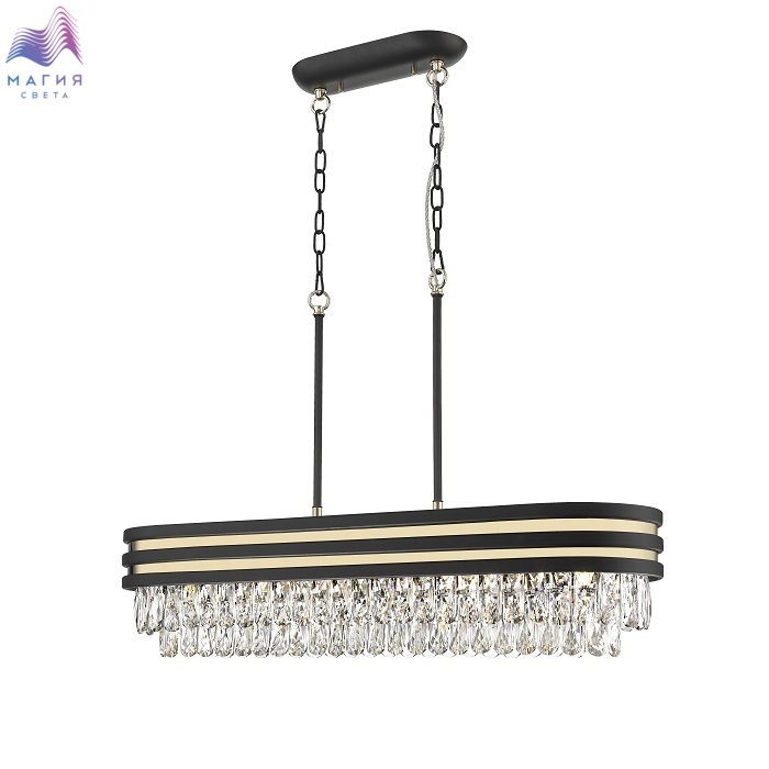 Подвесной светильник Simple Story 5521-6PL из металла цвета золото, матовый черный, с хрустальными подвесками.