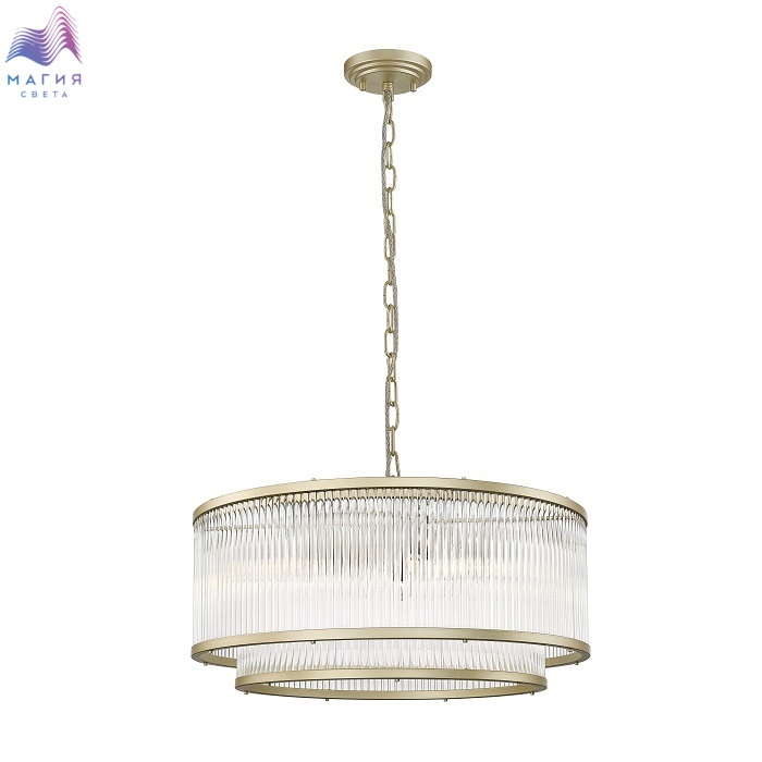 Подвесной светильник Simple Story 58181-6PL из металла цвета золото и стеклянных трубочек зафиксированных сверху и снизу.