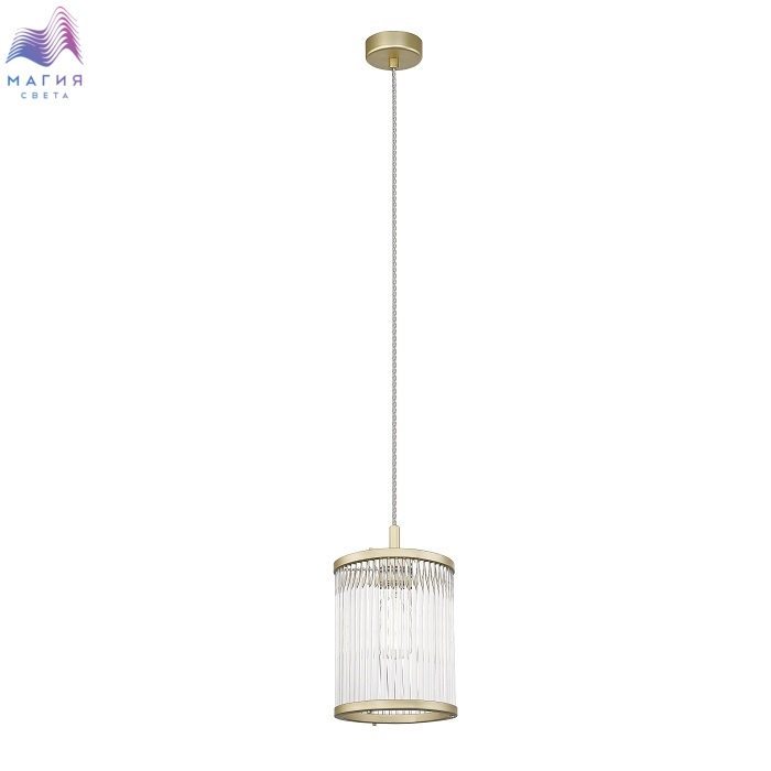 Подвесной светильник Simple Story 5881-1PL из металла цвета золото и стеклянных трубочек зафиксированных сверху и снизу.