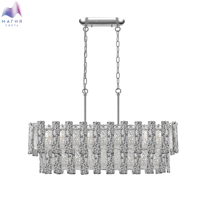 Подвесной светильник Simple Story 5931-7PL из металла цвета хром с большим количеством хрустальных подвесок.