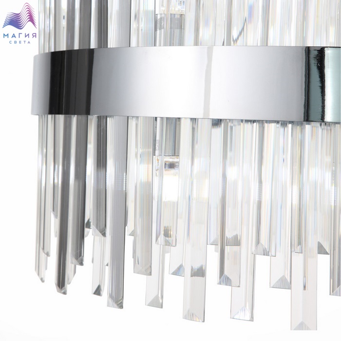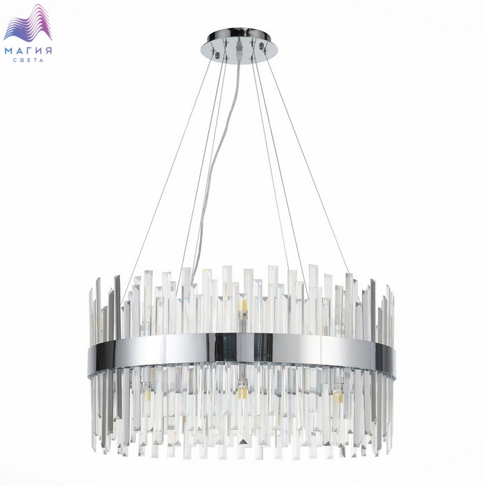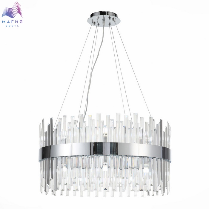 Крупные кристаллы прямоугольной формы по-прежнему на пике популярности. Особенностью коллекции ST luce Bafo являются кристаллы разной длины, расположенные в 2 ряда, что придает дизайну объем и многогранность. Обруч из металла в цвете хром усиливает игру света. Крепление люстр на тросы придает визуальную легкость. Лампы G9 поставляются в комплекте.