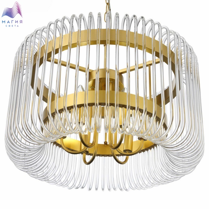 Изюминкой коллекции светильников ST luce Grosseto являются изогнутые стеклянные трубочки, которые огибают арматуру, создавая плавный, обтекаемый контур. Металл окрашен в цвет матовое золото и добавляет дизайну теплоты и изысканности.