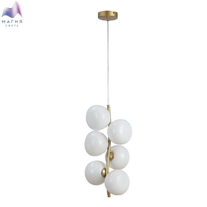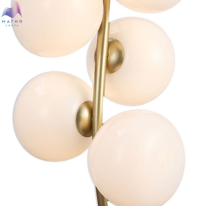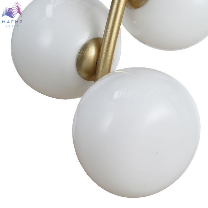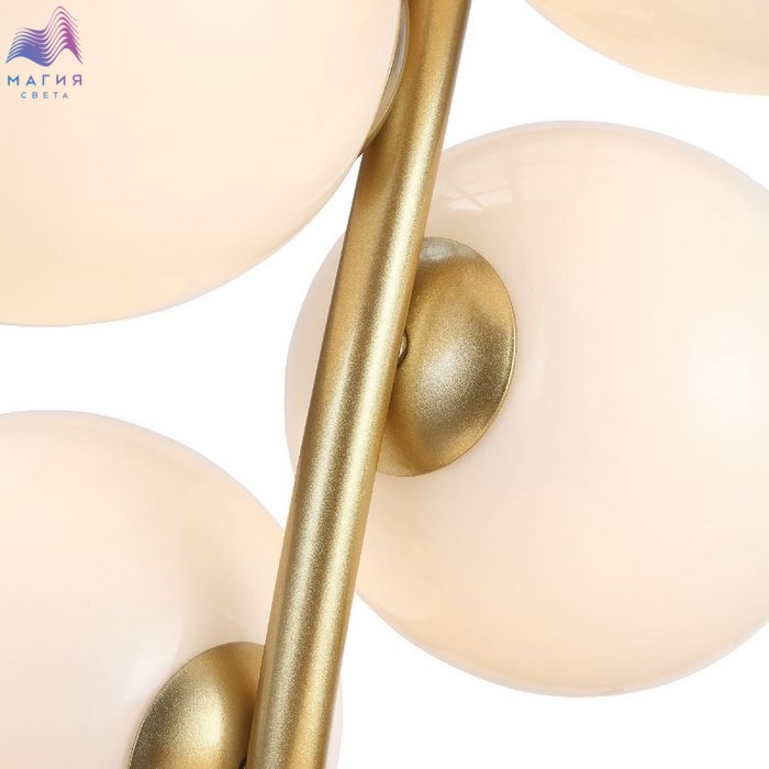 Серия ST luce Sweven отличается плавными изгибами и шарообразными плафонами необычной формы, напоминающие мыльные пузыри. Каркас цвета латуни, плафоны - молочного цвета.
